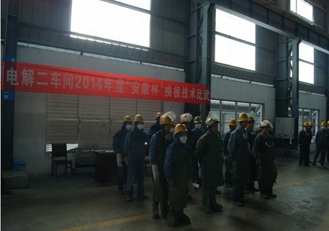 青海物產(chǎn)工業(yè)投資有限公司全面啟動"安康杯"競賽活動。2014年4月15日上午電解二車間舉行了"安康杯"換極技術比武大賽。公司副總經(jīng)理張允忠,副總經(jīng)理、工會主席張秉瑜,總經(jīng)理助理秦建峰出席了開幕式。
