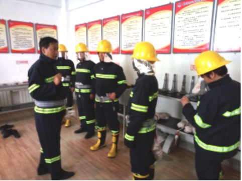 現(xiàn)場演示微型消防站防護用具的穿戴及使用方法,進一步細(xì)化了滅火戰(zhàn)斗組、救援組各所屬人員的責(zé)任分工,并對各類防護、逃生、破拆工具的實際用途做了詳細(xì)的講解說明。