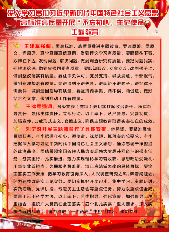由集團黨委副書記、總經(jīng)理劉玲同志宣讀《集團黨委開展"不忘初心、牢記使命"主題教育實施方案》。集團黨委書記、董事長王玉輝同志作了"不忘初心、牢記使命"主題教育動員講話,對集團系統(tǒng)開展主題教育工作進行了安排部署,要求把主題教育與完成本單位轉(zhuǎn)型升級、項目建設、生產(chǎn)經(jīng)營等工作任務結合起來,切實把主題教育成果轉(zhuǎn)化為企業(yè)發(fā)展的強大動力,推動青海物產(chǎn)高質(zhì)量發(fā)展。省委"不忘初心、牢記使命"主題教育第十二巡回指導組組長任正德同志做了指導講話。充分肯定了集團黨委的前期工作,認為會議準備比較充分,有效統(tǒng)一了干部職工的思想,制定的主題教育《實施方案》操作性強,目標任務具體,動員講話政治站位高,思想認識深,工作思路清晰。同時,結合工作組的職責就落實主題教育各項任務講了六點意見。一是聚焦根本任務;二是把握"十二"字總要求;三是緊扣"五句話"總目標;四是落實"四個貫穿";五是抓實"六項重點"舉措;六是力戒形式主義,嚴禁主題教育走形式、走過場。