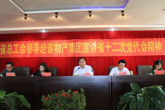 7月2日下午,省總工會巡視員、經(jīng)費(fèi)審查委員會主任劉西昆、經(jīng)審辦蒲勤主任、女工部韓梅部長、重工機(jī)械輕紡工會白立賢副主席一行4人來物產(chǎn)集團(tuán)宣講省十二次黨代會精神。集團(tuán)黨委書記、工會主席白家林同志主持宣講報(bào)告會,集團(tuán)兩級工會主席、委員40余人參加宣講報(bào)告會。