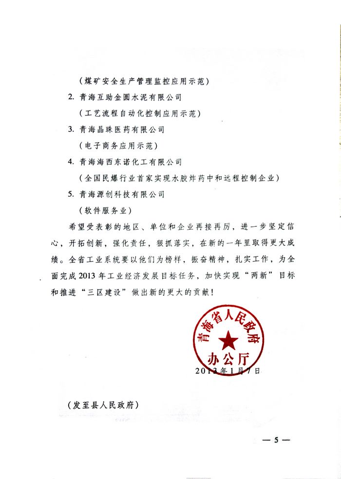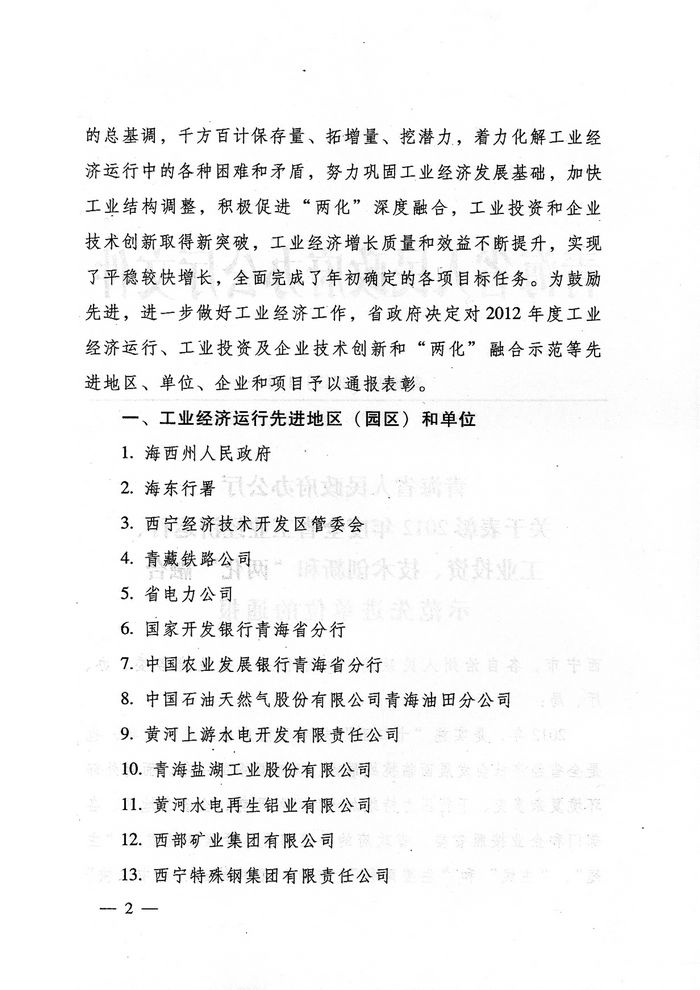 2012年,青海省物產(chǎn)集團(tuán)總公司在省委、省政府及省國(guó)資委的大力支持和領(lǐng)導(dǎo)下,集團(tuán)總公司按照全省工業(yè)經(jīng)濟(jì)總體部署和要求,著力推進(jìn)工業(yè)項(xiàng)目建設(shè),榮獲"2012年度工業(yè)投資貢獻(xiàn)獎(jiǎng)"。