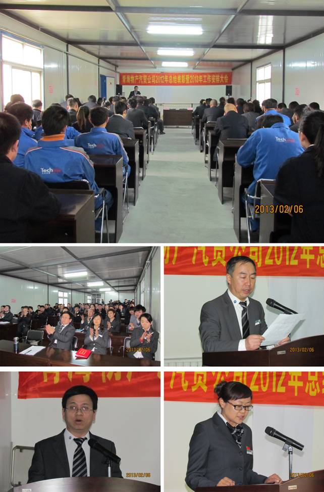 2月6日下午17點,青海物產(chǎn)汽貿(mào)召開了以"腳踏實地創(chuàng)佳績奮發(fā)圖強(qiáng)展新顏"為主題的2012年度工作總結(jié)暨2013年工作安排會議,150余名職工參加了大會,會議由副總經(jīng)理高金春主持。